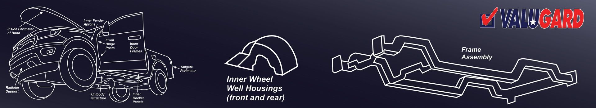ValuGard Undercoat is a black, solvent & wax base, self-healing, abrasion & corrosion resistant coating. It is applied to the underbody and wheel wells (if applicable) to protect factory anticorrosion coatings (E-coat & paint) from damaging road exposure while insulating from heat/cold and deadening road noise/vibration. It will not freeze, crack, pocket, and fail like outdated "rubberized" undercoats. ValuGard Undercoat is warranted for Lifetime on new vehicles against peeling, flaking or sagging and rust-through perforation of underbody panels.
